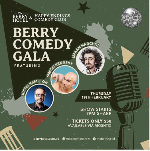 Get ready for a big night of laughs as Berry Comedy Gala takes over The Berry Hotel on 19th February.