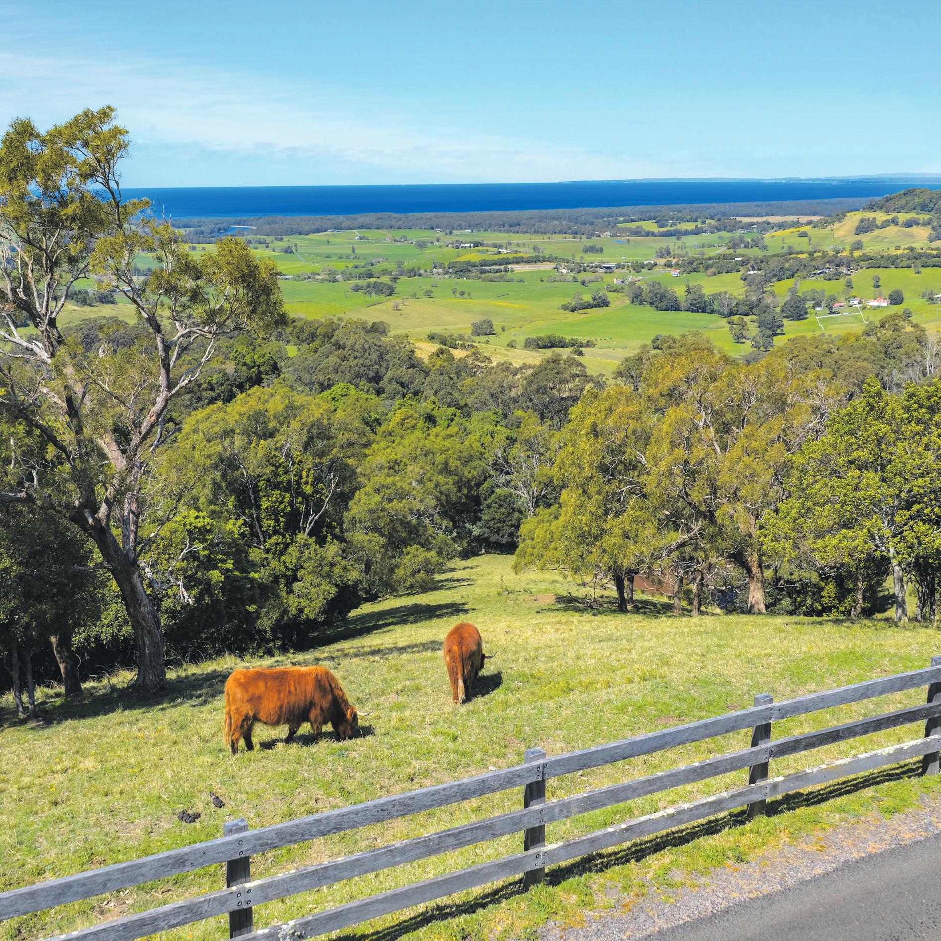 Timber railings line the three-quarter mile sealed carriage way which keeps the grazing Highland Cows secure and protects the property’s rainforest and wildlife.
