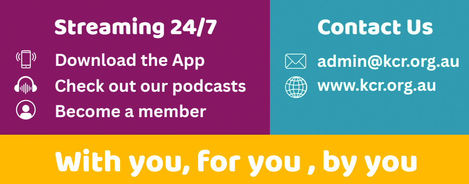 KCR is a 24/7 streaming community radio service sharing stories, music, conversations and local content that reflect the diversity, creativity and lived experience of our region.