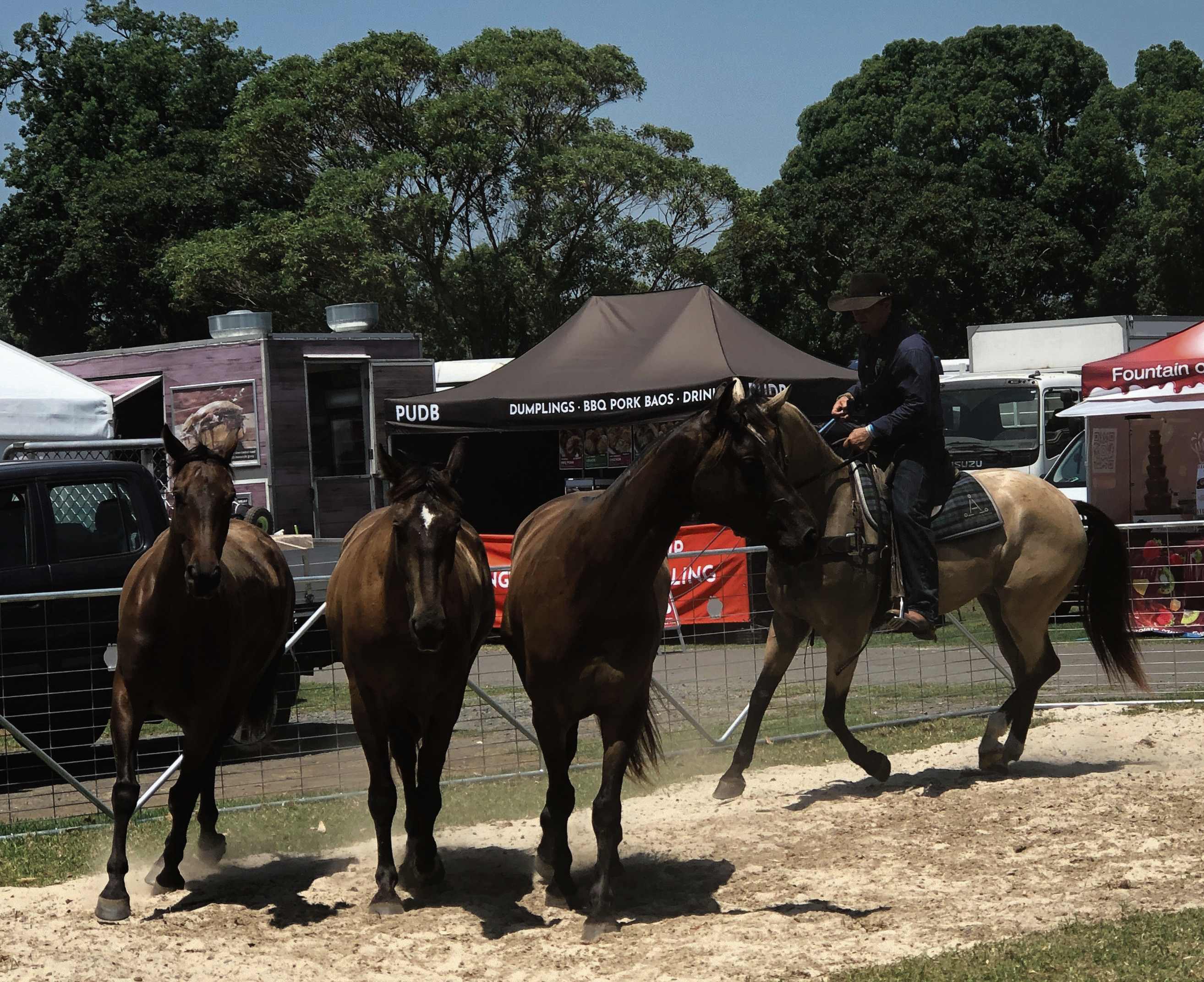 The gigantic horse transport trucks, floats and caravans filled the eastern side of the showground while laughter and screams could be heard coming from patrons enjoying the rides and games in Sideshow Alley over in the west.