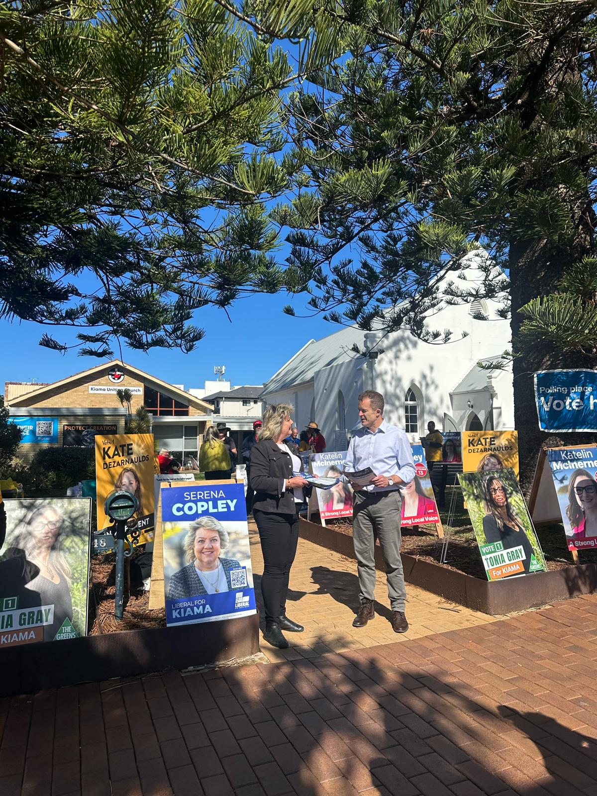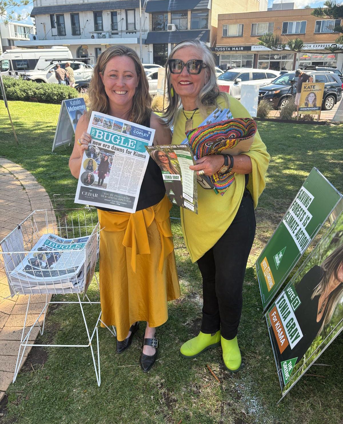 While the major parties were bickering, Community Independent candidate Kate Dezarnaulds and The Greens' Tonia Gray were standing side by side at Kiama Uniting Church, showing that politics does not need to be about point-scoring and mud-slinging.