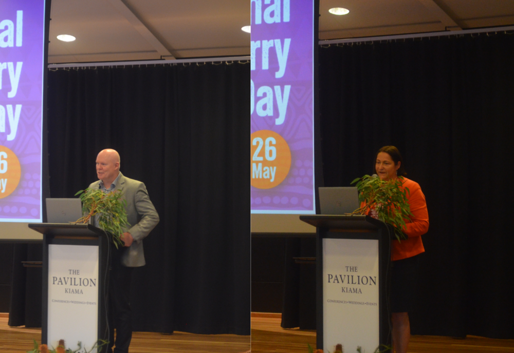 Mayor Cameron McDonald (Left) and Member for Gilmore Fiona Phillips addressing the crowd on National Sorry Day.