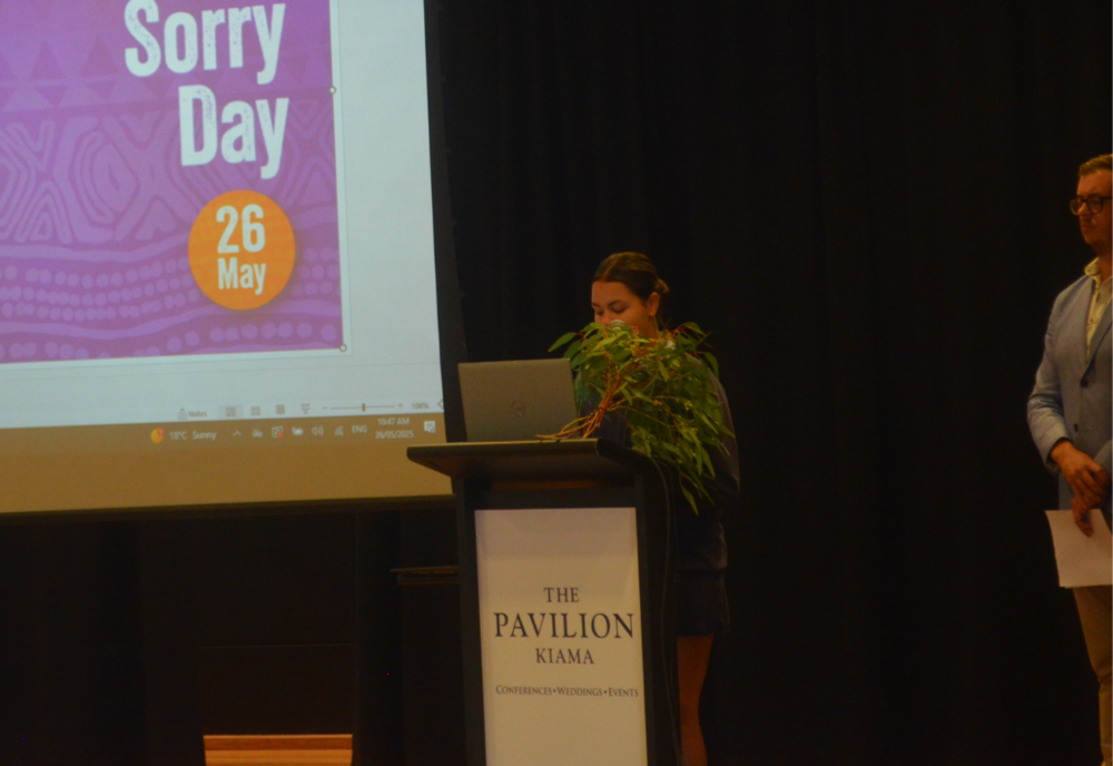 The program continued with a heartfelt speech from Kiama High School student Tyiara Simon, who reflected on this year’s Sorry Day theme: “Bridging Now to Next” by sharing the story of her great-great-grandmother, Ella Simon, who was taken from her family as a baby.