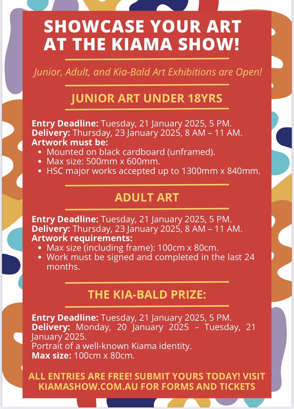 🎨 Calling all artists! 🎨 Showcase your talent at the Kiama Show! 🎨 Calling all artists!