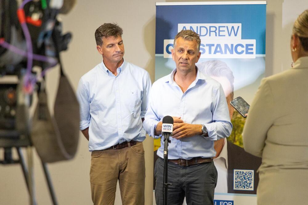 Andrew Constance with Shadow Treasurer Angus Taylor at the start of the election campaign. Photo: macourtmedia.com