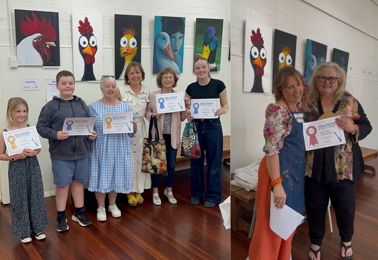 Winners of the category awards included: in the primary school age group, Owynn Naughten with a painting titled The Wise Duck; in the teenage category, Isla Downes (winning for the second year in a row) with Sea-saw and Yo-yo; and in the adult category, Anne Geenen with Henny Penny.