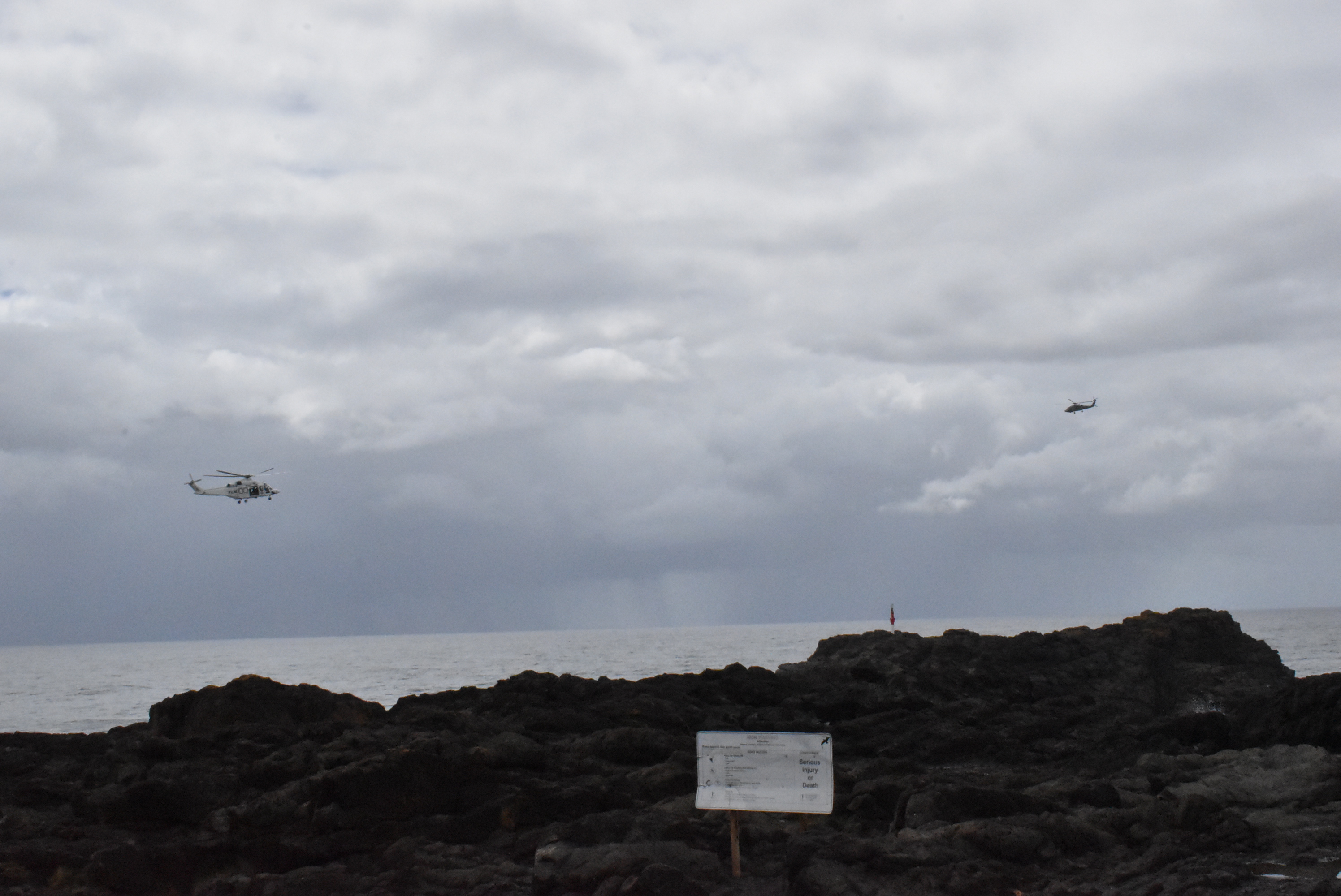 Three helicopters were seen overhead, assisting with the search, while a jetski was observed moving along the coastline toward Surf Beach