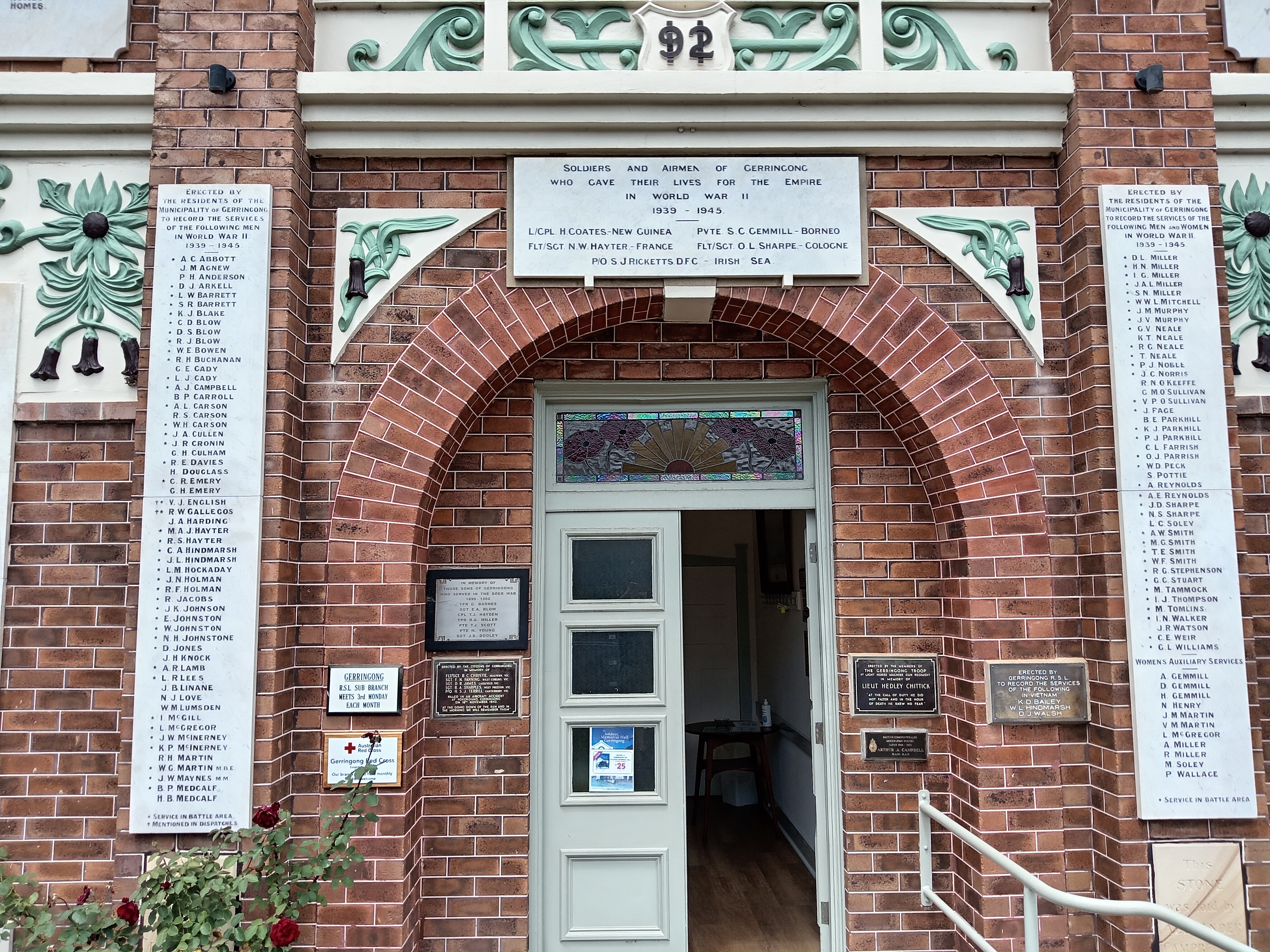 The Roll of Honour plaque at the Gerringong RSL Sub-branch for World War II, labelled “The Great War”, reads: “Men Who Answered their Country’s Call. 1914–1918.”