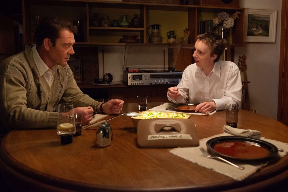 Angus with his Dad, played by Márton Csókás. Photo: Dougal Holmes