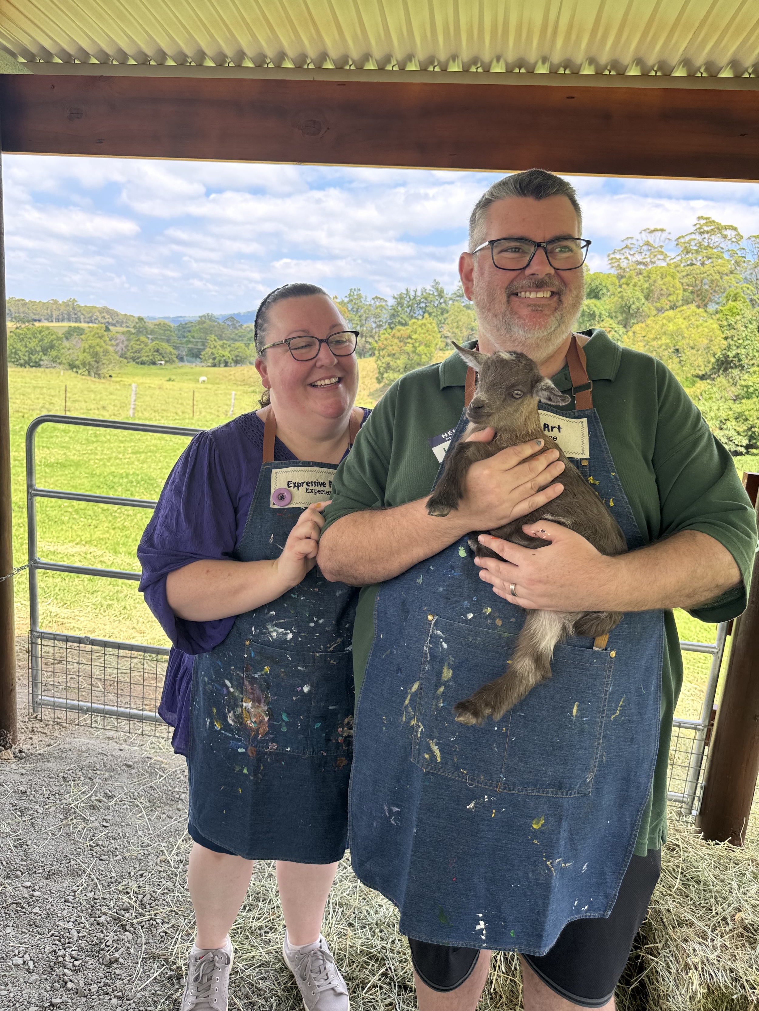 Guests leave not only with their own handmade artwork, but also with memories of a farm experience that’s equal parts calming, joyful, and unexpected, with the added delight of a potential cuddle with a baby goat.