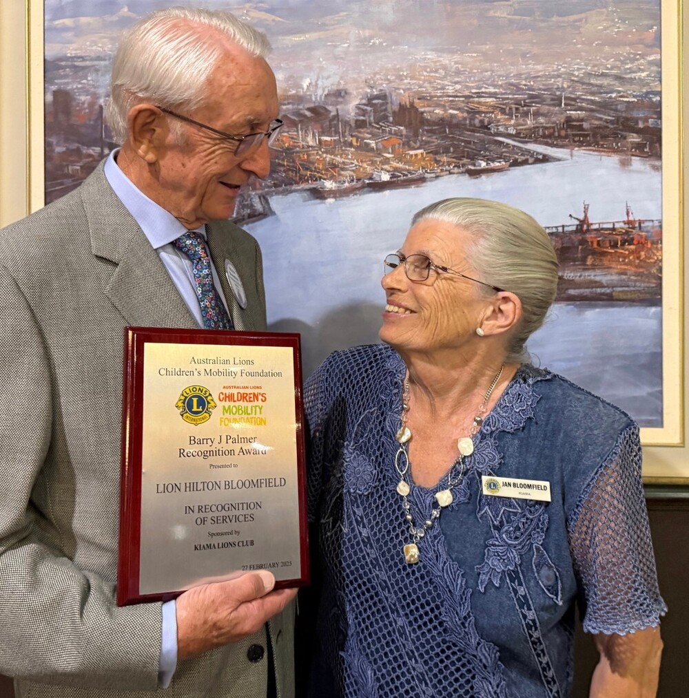 Honouring Hilton Bloomfield and Jon Phipps' community impact.The Kiama Lions Club honoured Hilton Bloomfield and Jon Phipps for their efforts in raising funds for the Australian Lions Children’s Mobility Foundation.