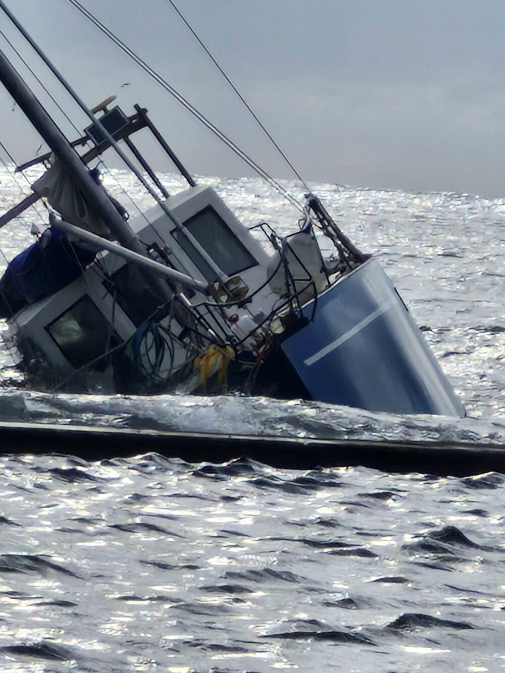 “I think it hit the rocks,” he explained. “Or maybe a shark. And then they got into a little boat and paddled to shore.”
