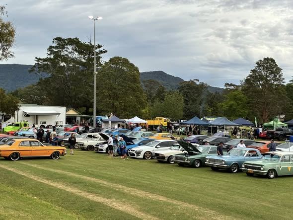 Cars on display at Kevin Walsh Oval. Photo: SuppliedNot even a few clouds could dampen the spirit of Jamberoo’s annual Car Show and Family Day last Sunday.