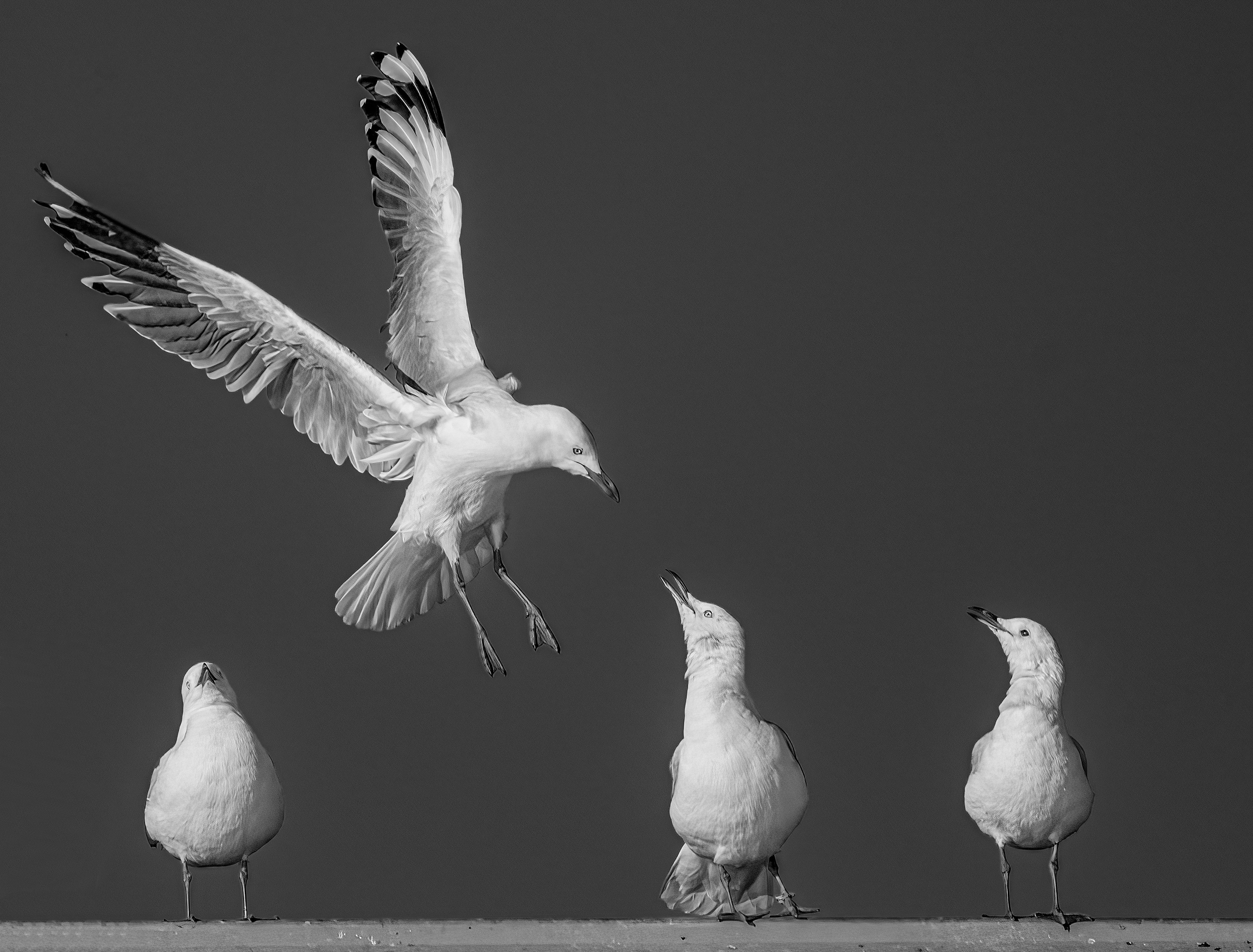 The two images van Oudtshoorn received the Highly Commended Awards for were ‘Approaching storm’, which he describes as “a raptor racing to safety across a tempestuous sky in Jamberoo” and ‘What do you want’ which “captures a confrontation between Silver Gulls at the Kiama waterfront”.