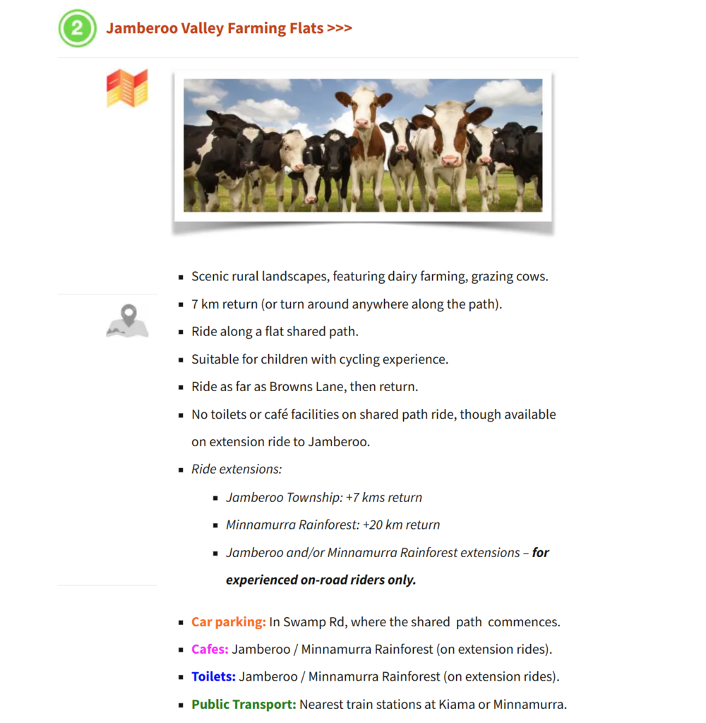 Regular cyclists and visitors already use the existing sections, but without a complete connection, Jamberoo cannot fully benefit.