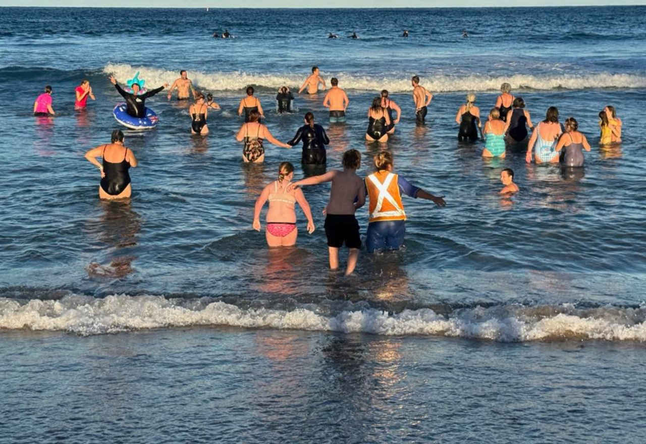 Some of the 35 Kiama locals in the water to celebrate the winter solstice. Photo: Kiama Farmers' Market