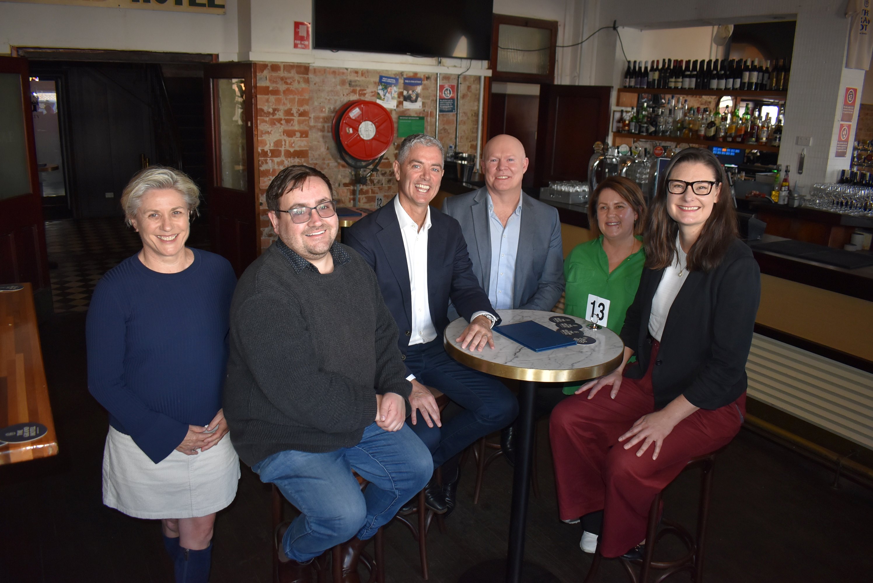 All smiles at The Grand for the Special Entertainment Precinct announcement. Photo: The BugleLabor candidate Katelin McInerney believes Kiama is a step closer to becoming “the cultural capital of the South Coast” after the NSW Government has committed $200,000 to Kiama Council towards establishing a Special Entertainment Precinct in the town.