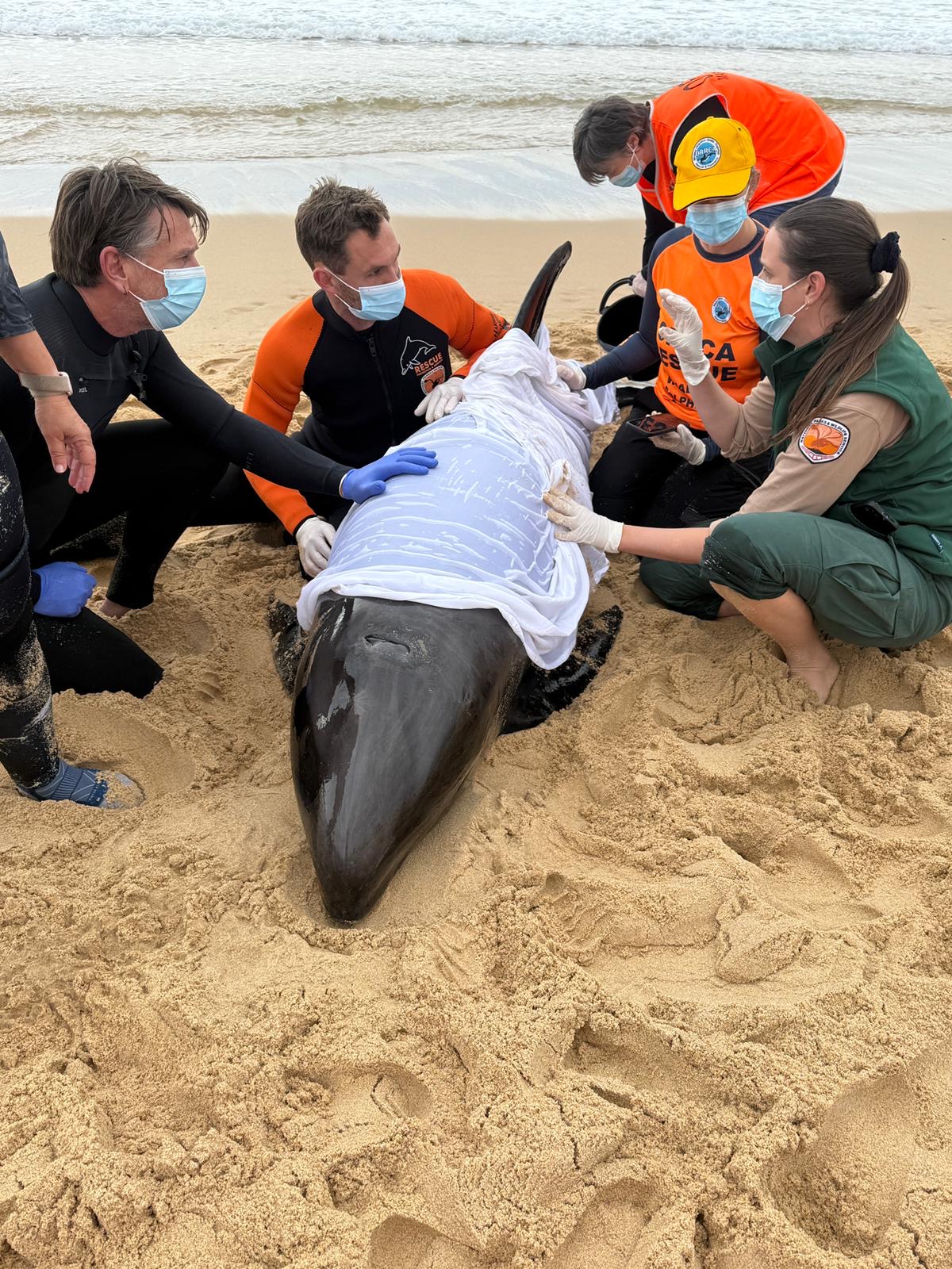 Rescuers from ORRCA and the NPWS arrived at City Beach within half-an-hour of Ms Doyle’s phone call and identified the distressed animal as a melon-headed whale.