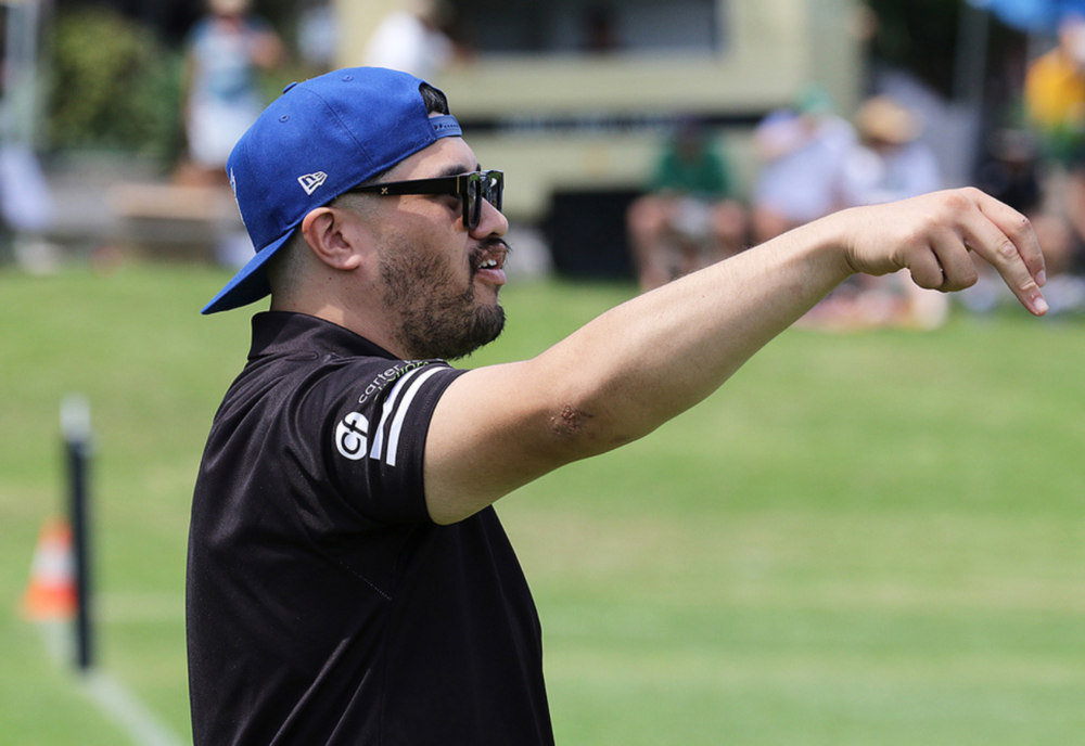 Dante Patrick coaching the Kiama squad at the Sevens tournament earlier this year. Photo: Brian Scott