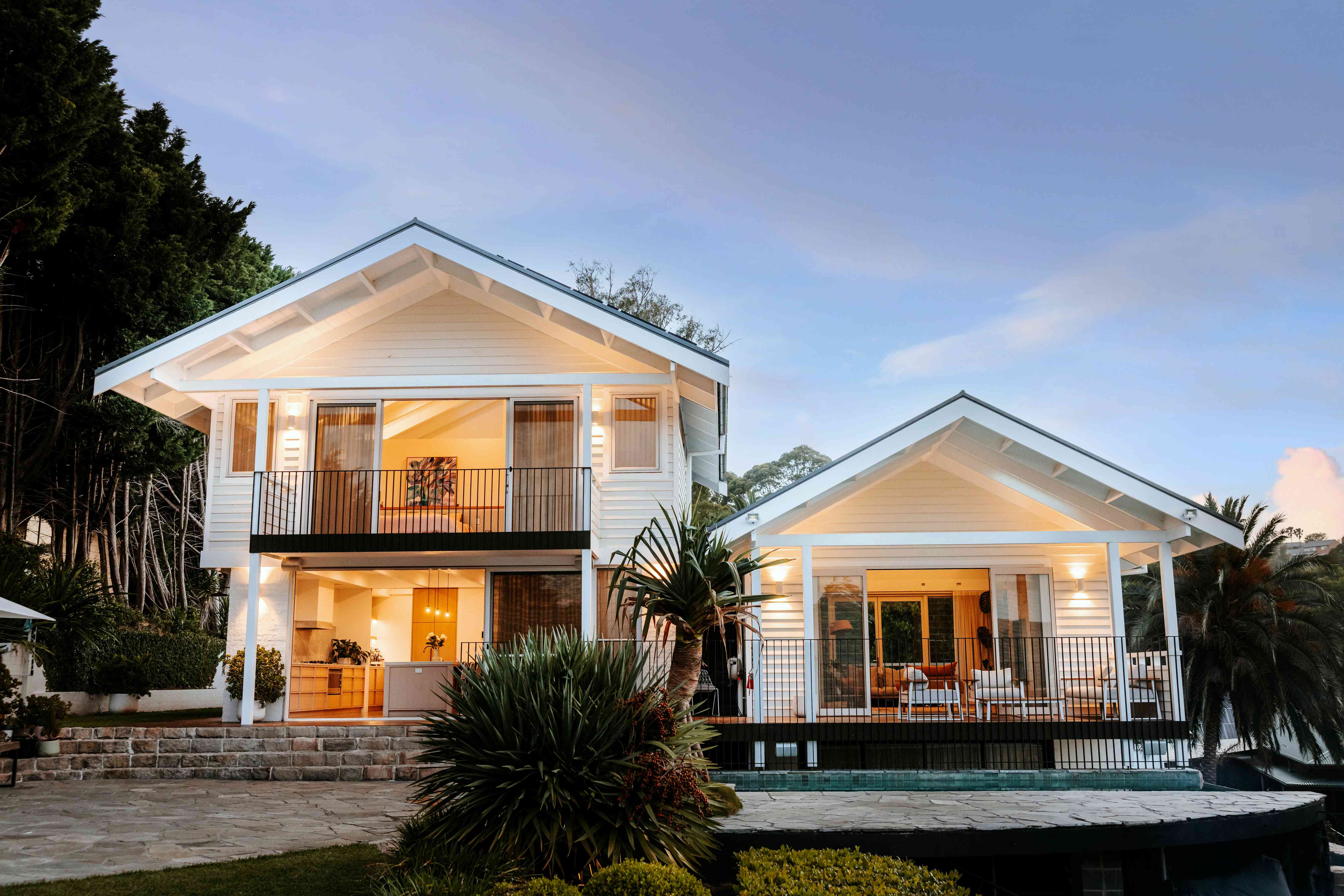 The designer landscaped gardens feature over 50 tonnes of curated sandstone, established vegetable beds, fruit trees, a chicken pen and exotic specimen trees.