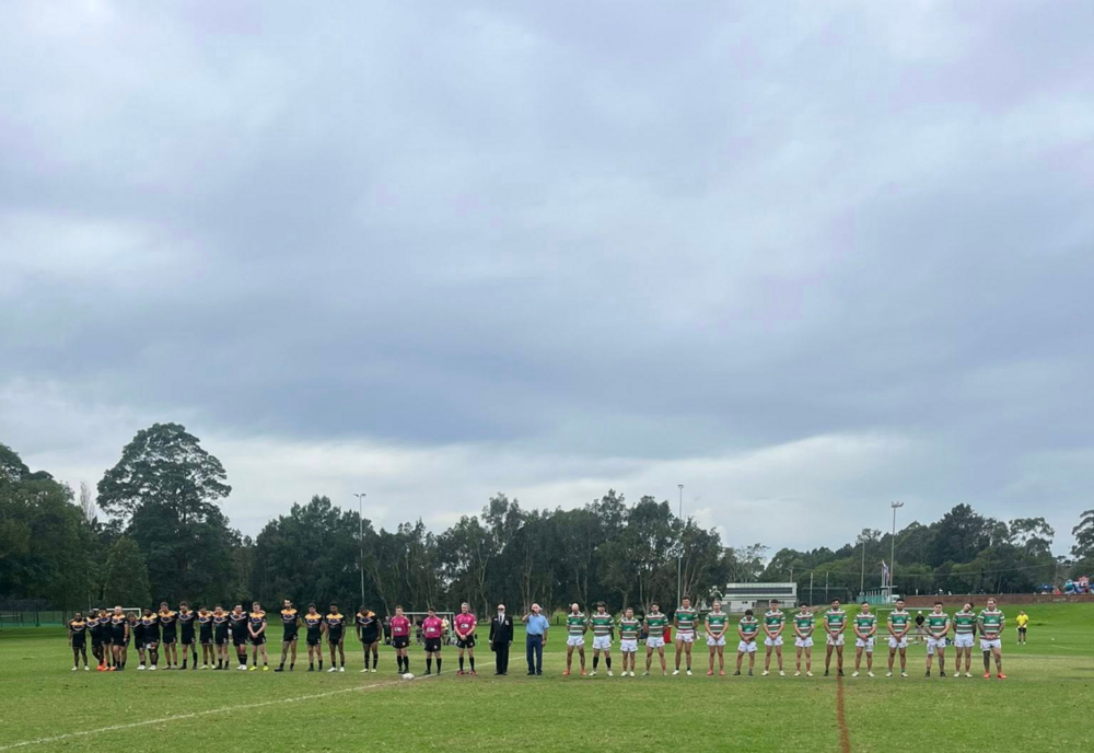 Nowra-Bomaderry and Jamberoo standing for an Anzac Day ceremony. Photo: Jamberoo Superoos
