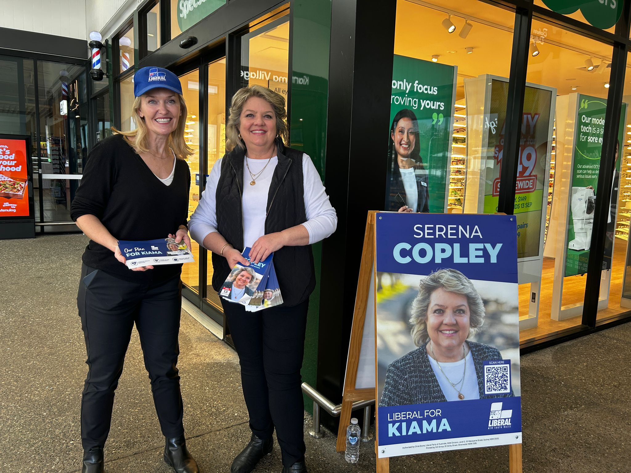 Deputy Liberal Leader Natalie Ward and Kiama by-election candidate Serena Copley on the hustings in Kiama on Thursday. Photo: The Bugle