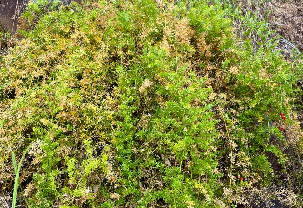 • A vigorous woody herb with spiky leaves and an underground corn that needs to be removed. Its colourful berries are spread easily by birds.