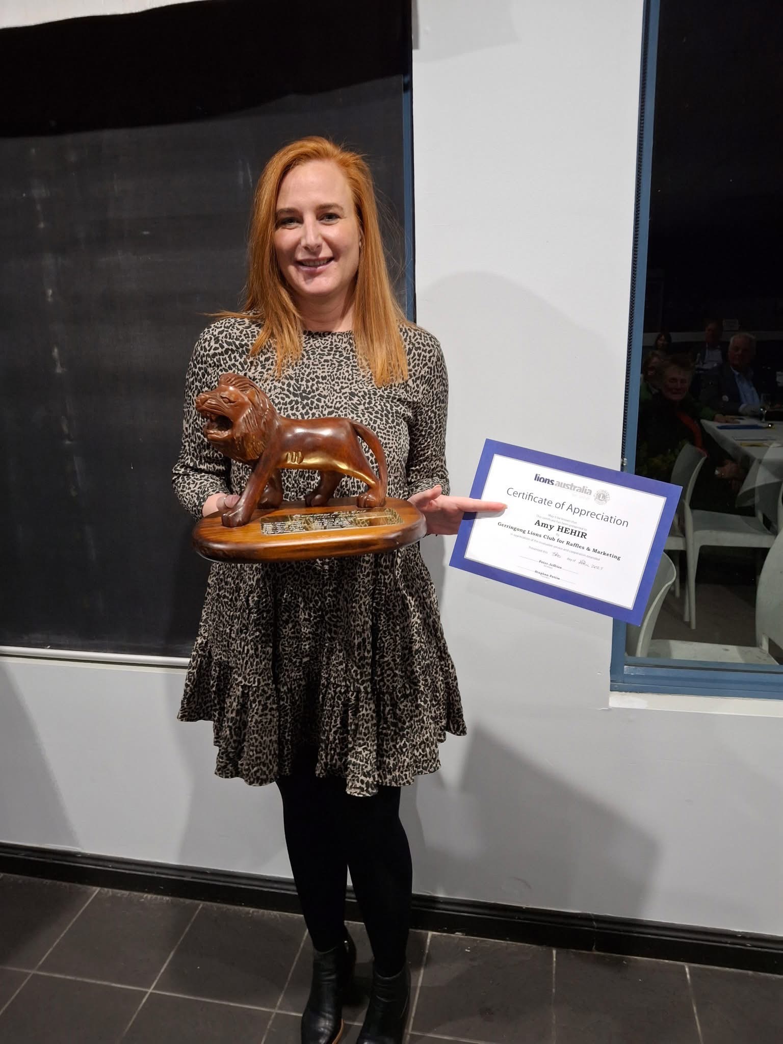 Amy Hehir received the Lion of the Year Award for her work in raffle organisation and marketing.