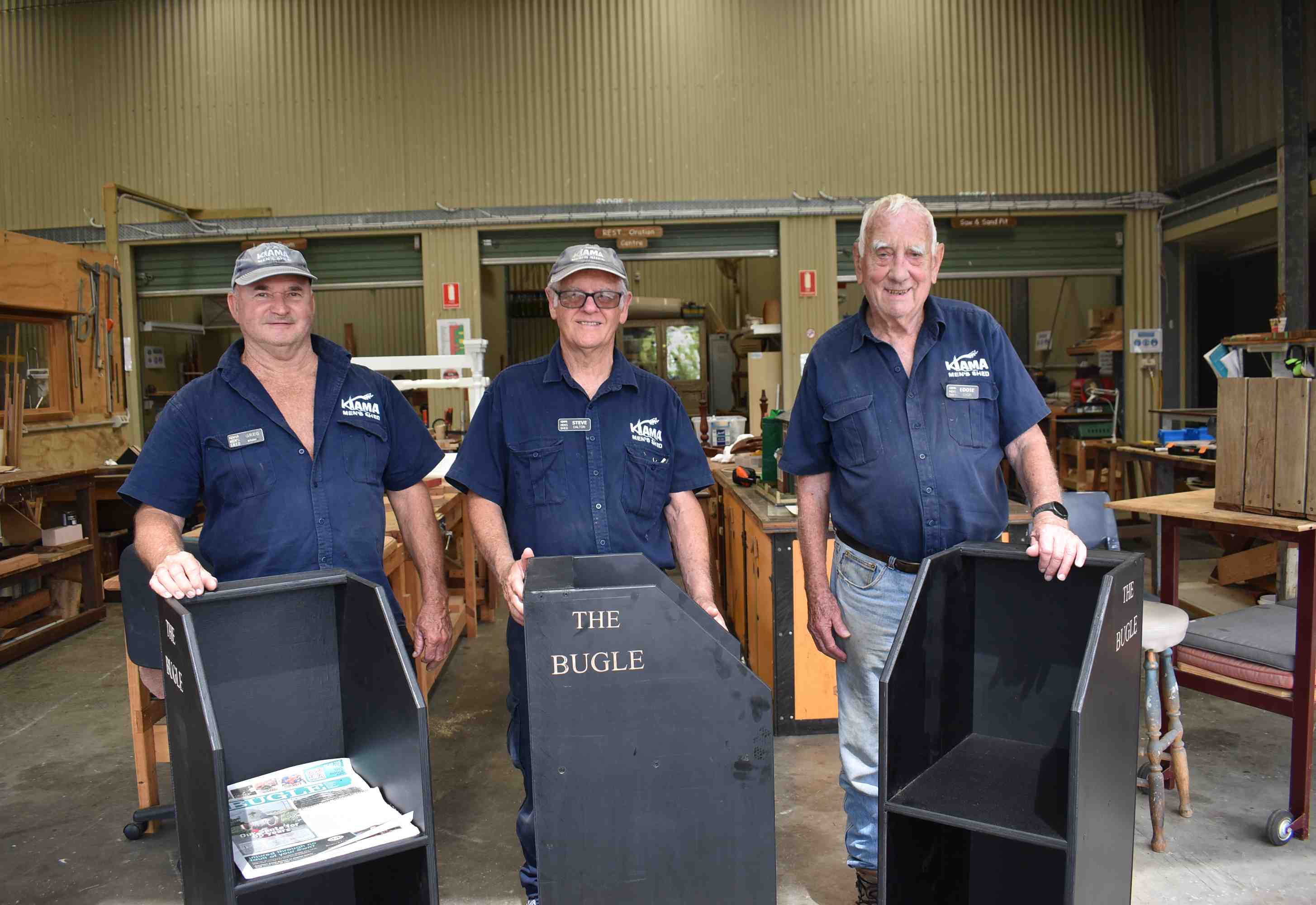 Local hands, local news: Kiama Men’s Shed crafts new Bugle standsGreg Brown, Steve Dalton, and Eddie Lyon of Kiama's Men Shed