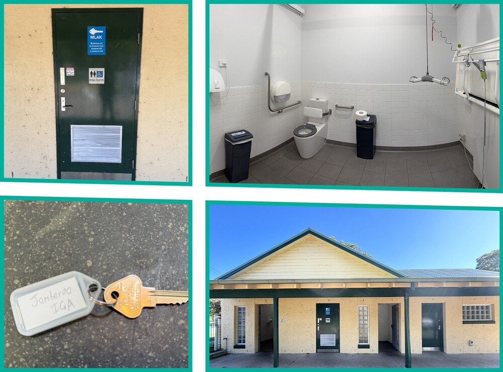 The disabled toilet at Reid Park in Jamberoo is permanently locked, requiring users to obtain a key from the local IGA or pub. The disabled toilet at Reid Park in Jamberoo is permanently locked, requiring users to obtain a key from the local IGA or Jamberoo pub.