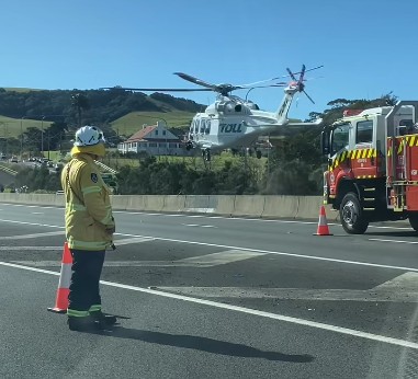 A motorist is airlifted to hospital following an accident near Gerringong on Saturday. Photo Peter McGuinness/Facebook