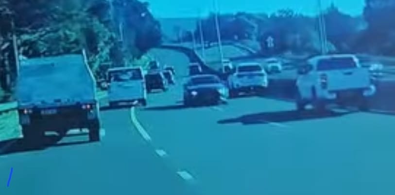 The blue Mustang travelled at high speeds while dangerously heading north in the southbound lanes and several motorists thankfully avoided crashing into the car amid the mayhem.