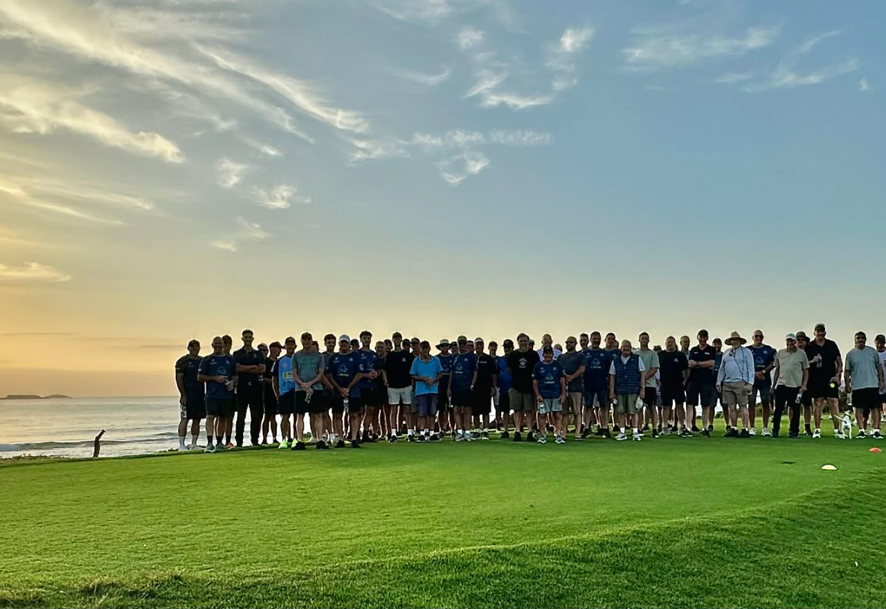 The Man Walk members at their fundraising golf day. Photo: Mark BurnsAlmost nine years after Kiama local Mark Burns went for a walk around Kiama Harbour and came up with the idea for The Man Walk, the initiative is preparing to launch its 100th location.