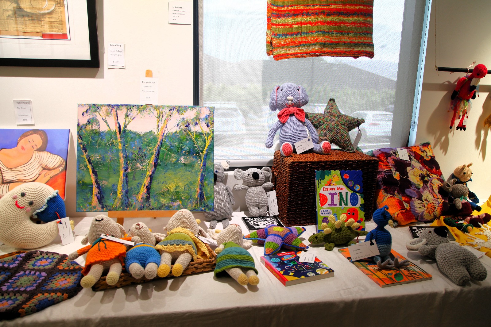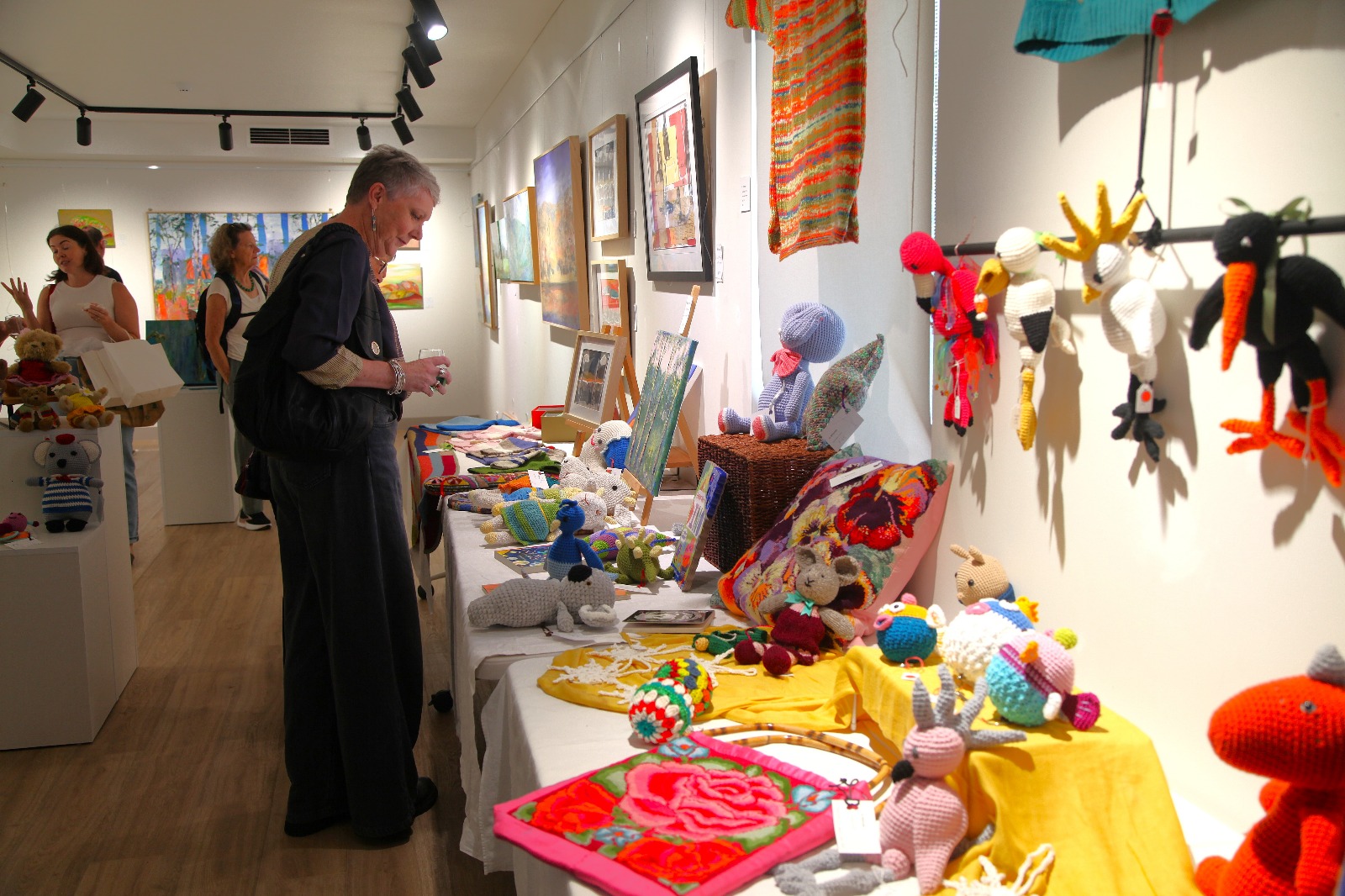 The exhibition brings together nature-inspired art and handcrafted pieces in a celebration of textures, care, and connection, featuring knitted, crocheted and tapestry wearables, and toys, displayed alongside vibrant artworks that celebrate the natural beauty of our local area.