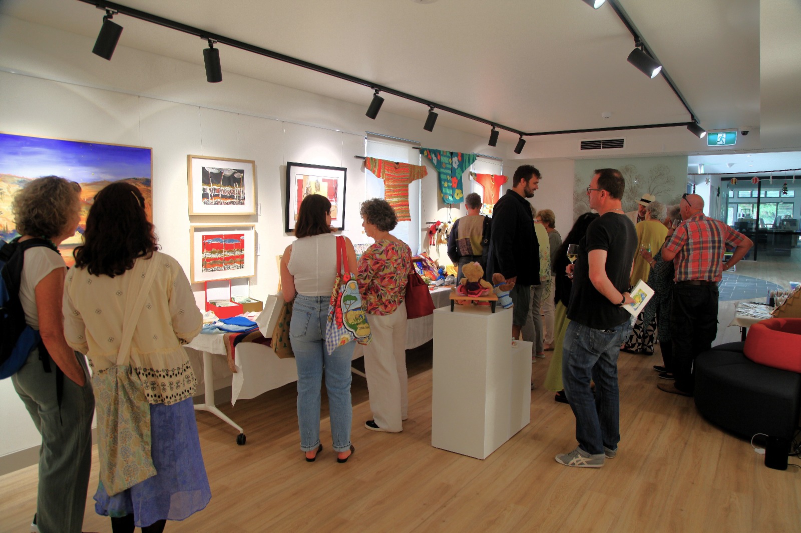 Visitors at the exhibition opening viewing the handcrafted works - Photo Bellinda Dunn