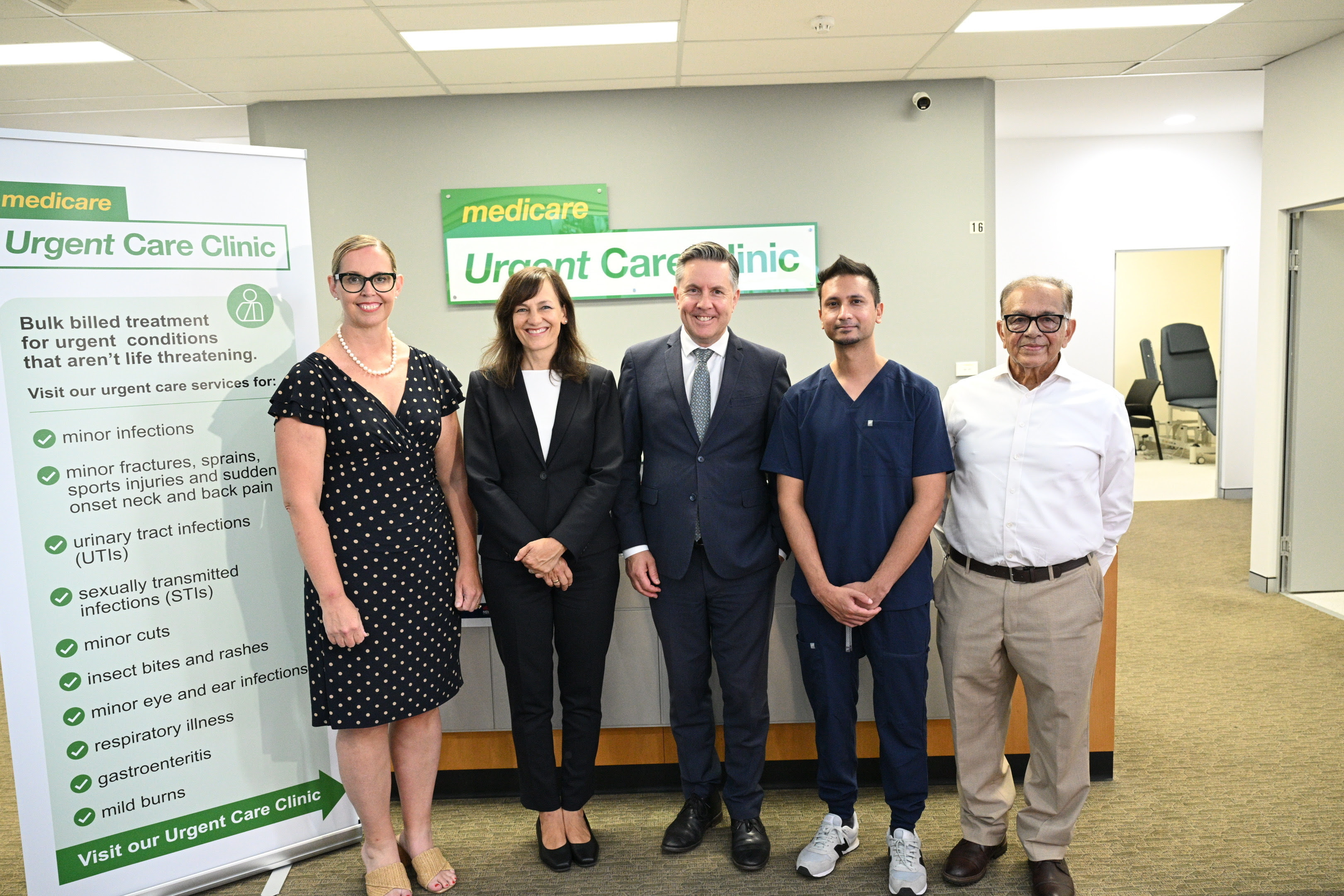 New Medicare Urgent Care Clinic opens in ShellharbourFrom left: CEO of COORDINARE, Prudence Buist, Member for Whitlam, Ms Carol Berry MP, The Hon. Mark Butler MP, Minister for Health and Ageing Minister for Disability, Dr Mohammad Abdool, Lead Shellharbour Medicare UCC and Dr Muhammad Rashid Centre Health.