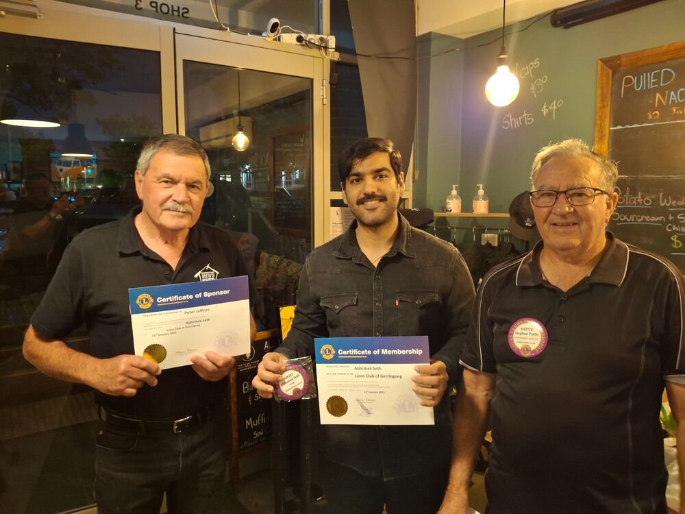 New member Dr Abhishek Seth in between Lions Secretary Peter Jeffries (L) and President Steve Pottie (R).
