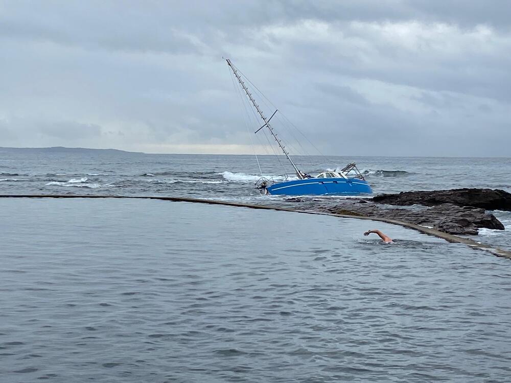 The yacht which ran aground off Kiama rockpool.This story was first published on 8 April at 7.51am and has been updated
