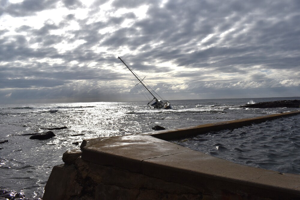 Photo of the yacht sinking at 5.30am on Tuesday.