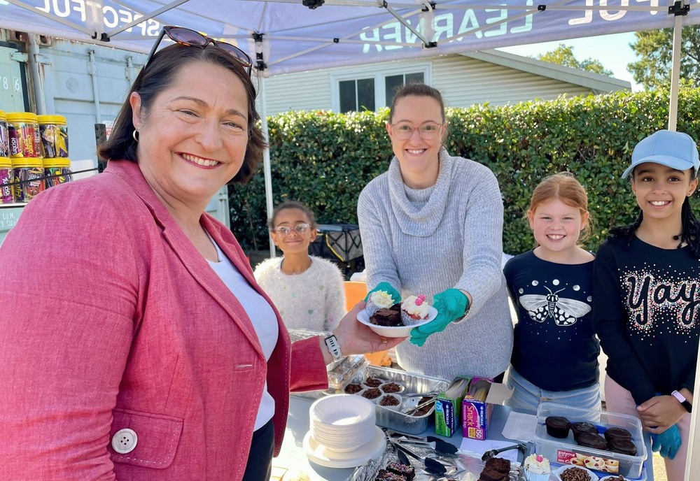 Fiona Phillips at an election day cake stall on Saturday.