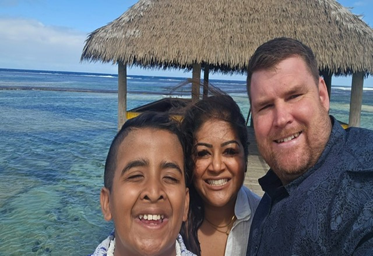 Viaan with mum Priya and her partner, Mark, on holiday in Fiji this week.
