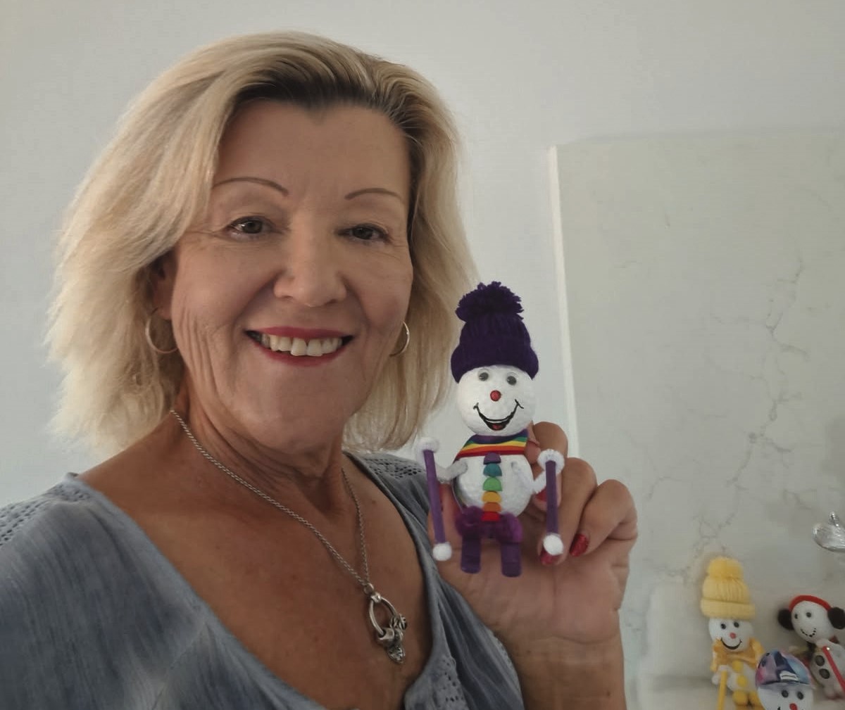 “Last year I gave my neighbours a family of golf ball skiers,” says Jane. “They are mad snow bunnies.”