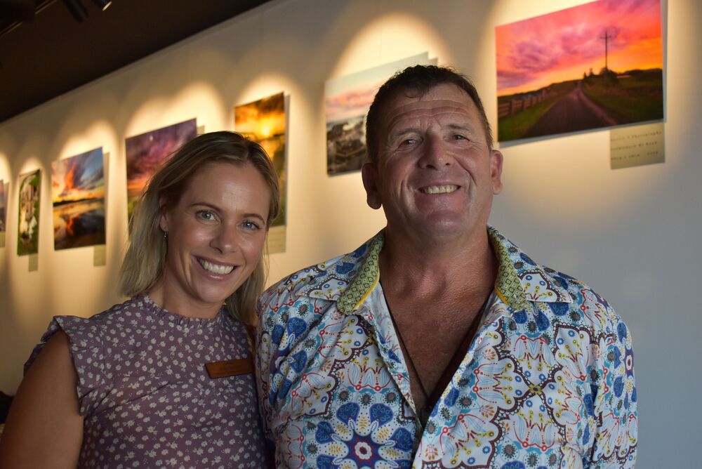 Sally Bursell - Destination Kiama- with photographer Darren Parlett at his exhibition at Cin Cin opening with Expressive Art Trail