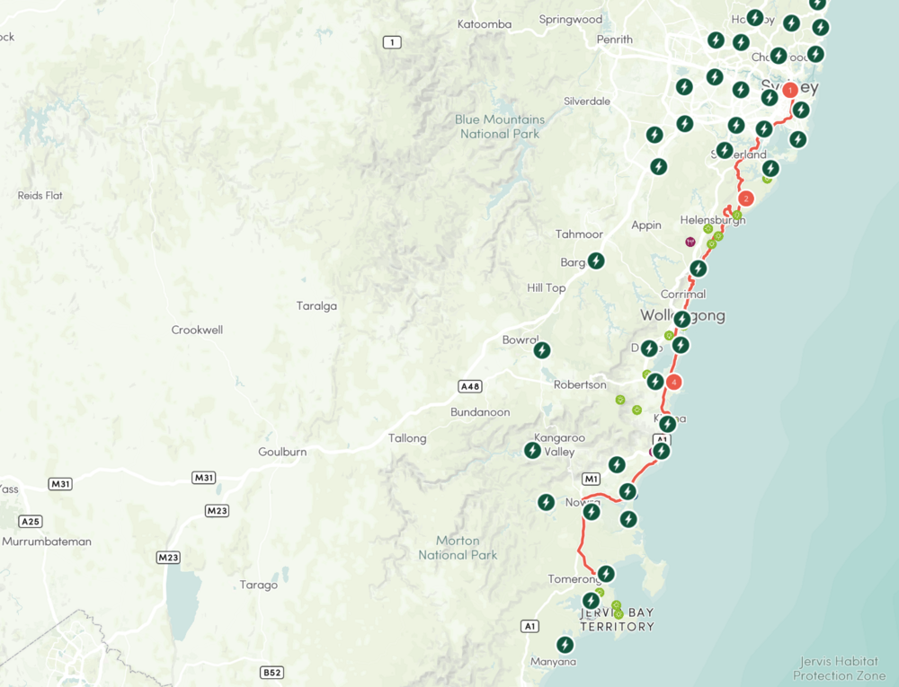 For those making the trip in an electric vehicle, Kiama is an ideal stop with EV charging stations readily available.