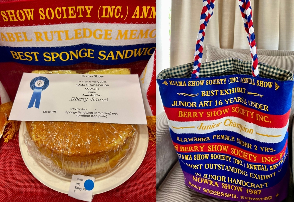 Liberty Baines has been entering cookery, handcrafts, and decorative flower competitions since she was a tiny tot, and despite her age, she regularly triumphs in the open section. Her latest win includes a stunning bag crafted from the prize ribbons she has collected over the years. A true family tradition, Liberty and her grandmother have competed together in the intergenerational cookery class every year since its inception, keeping the spirit of the Kiama Show alive across generations.