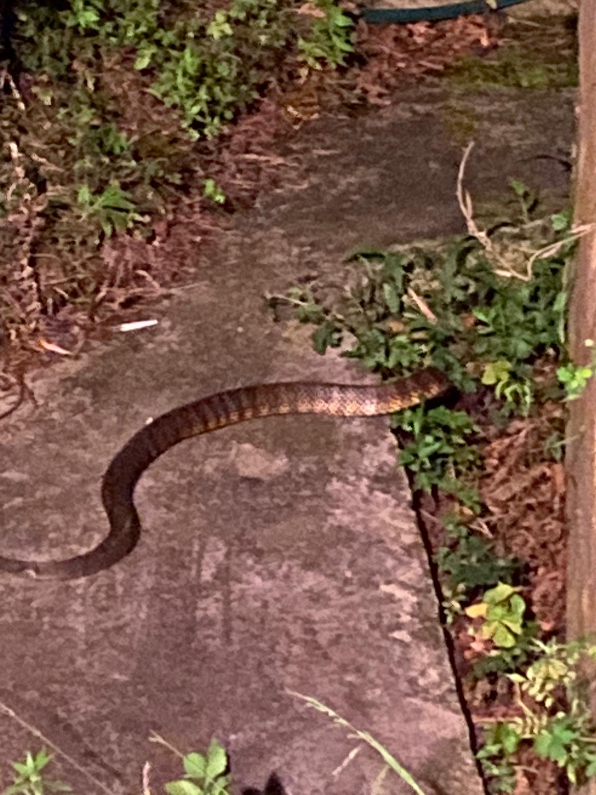 Pete the python lived under our elevated bedroom, and regularly dropped his skin around the place. He kept down the mice for us, and got quite plump. One day he was curled up in an ivy hedge surrounding our little decorative pond. He looked for all the world like an old discarded tyre just lying there. You should have heard the screams when my granddaughter went to investigate! Poor Pete, we didn't see him sun baking there again.
