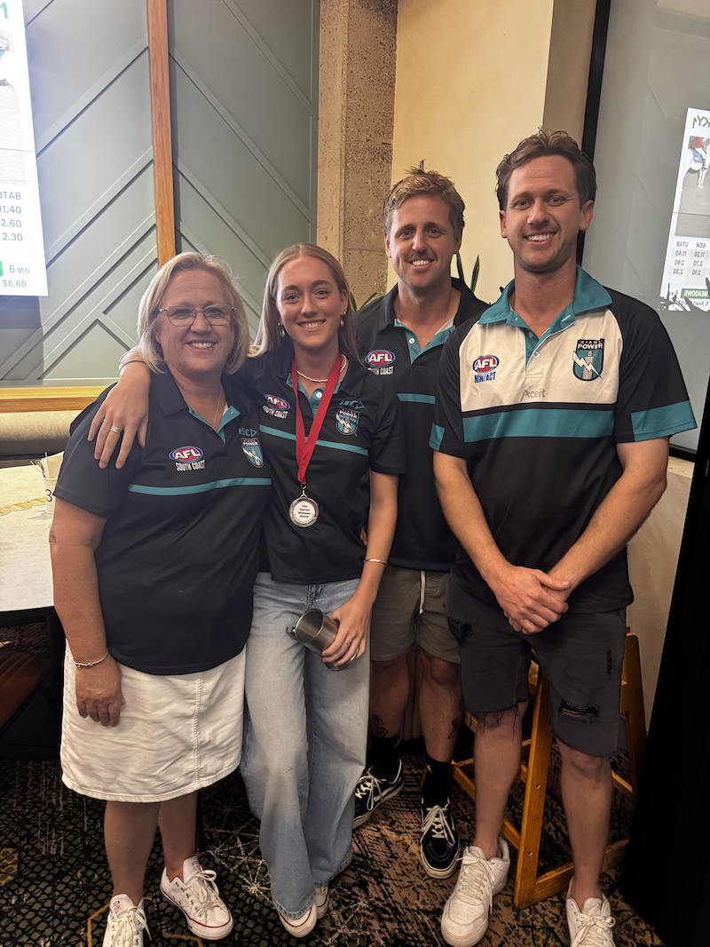Jade Quigley receives the Darren Williams Medal for Best on Ground in the Women’s Premier League match, presented by the Williams family. Source: Anthony Grady