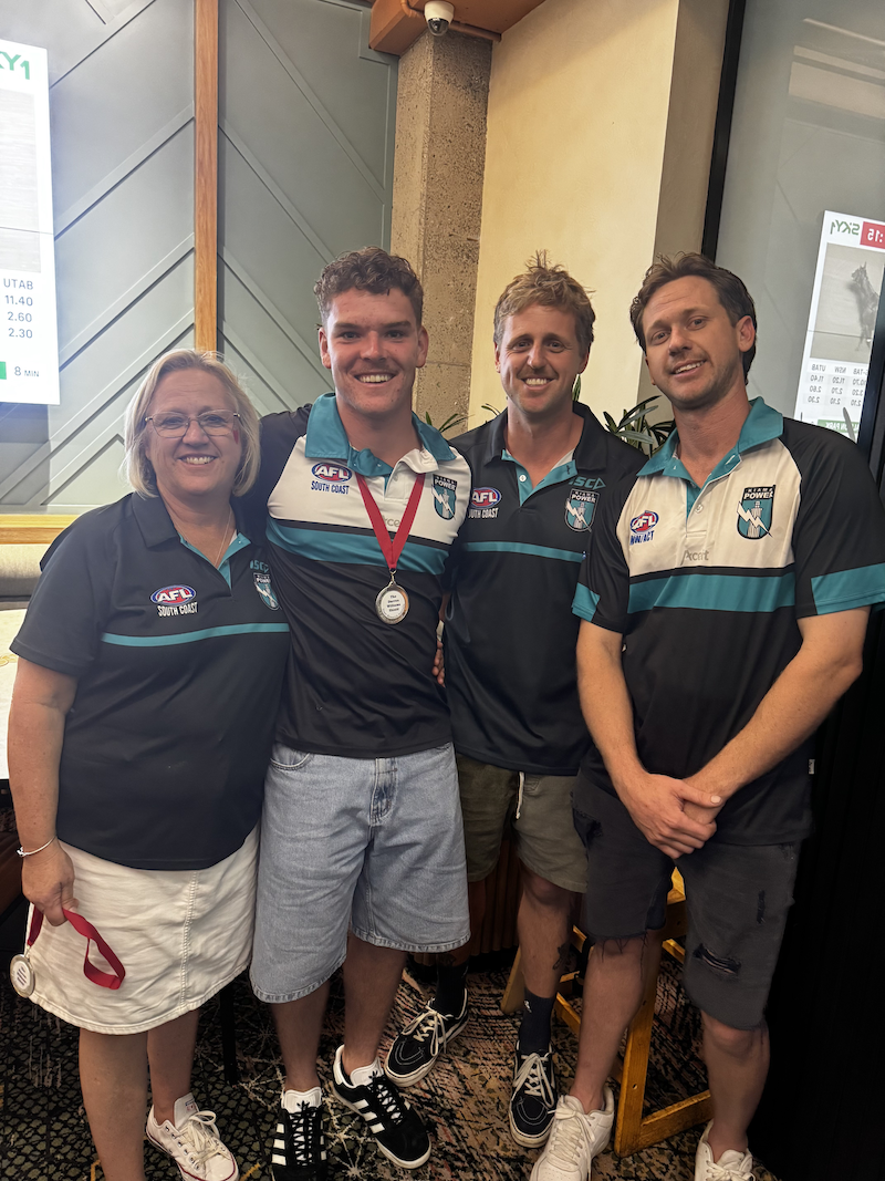 Sonny Ettridge receives the Darren Williams Medal for Best on Ground in the Men’s Reserve Grade match, presented by the Williams family. Source: Anthony Grady