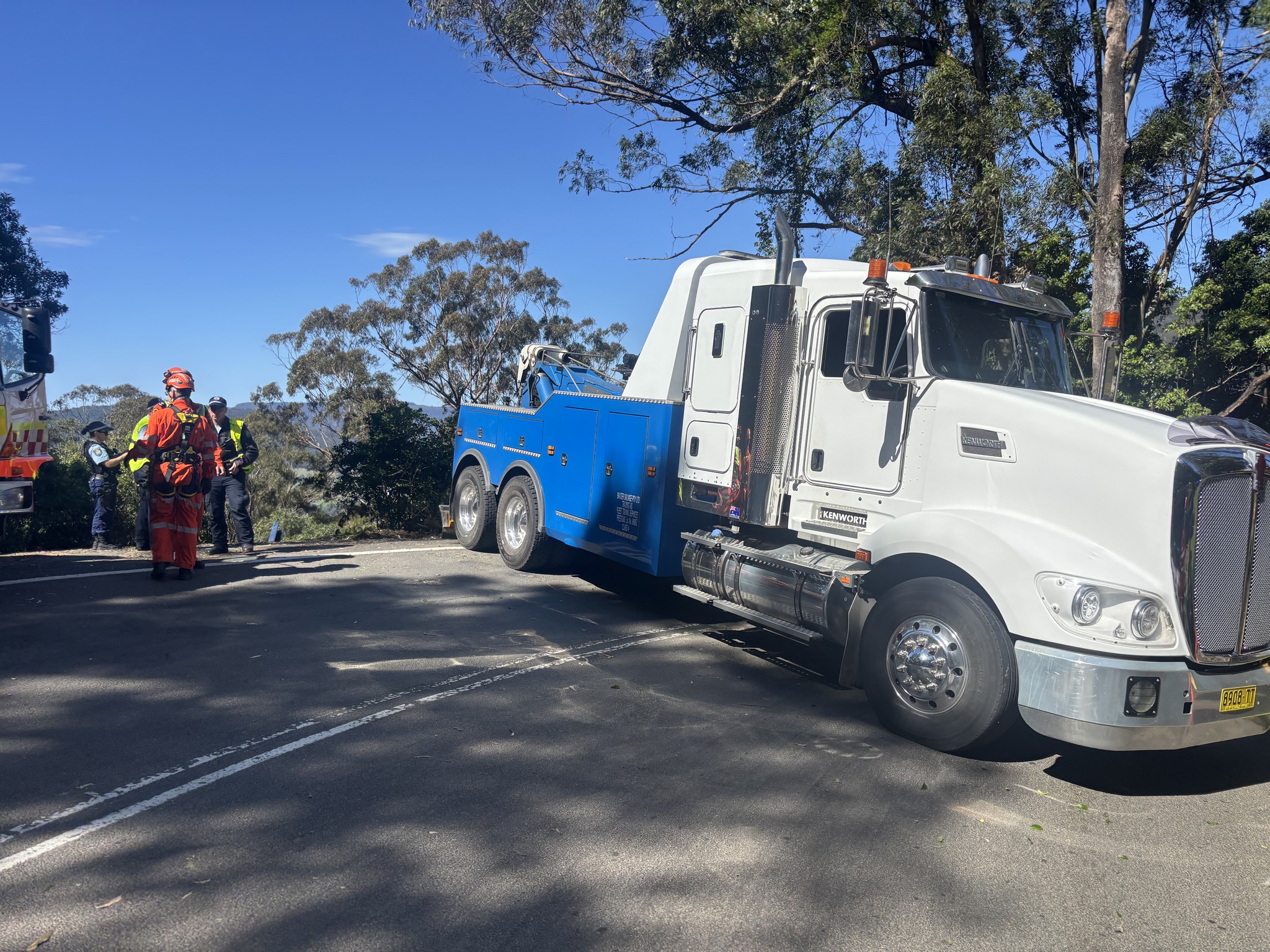About 10am, emergency services were called following reports of a crash near Mannings Gully and South Coast Police District officers found a Pantech truck had left the roadway and crashed down an embankment.