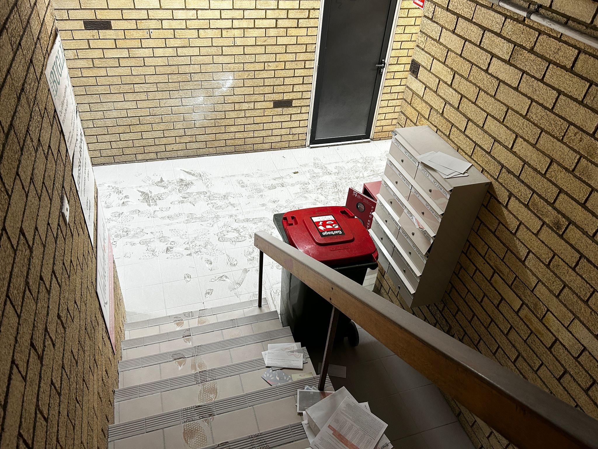 They also ripped mail from the letterboxes for the Edessa Arcade tenants and dumped them in the stairwell.